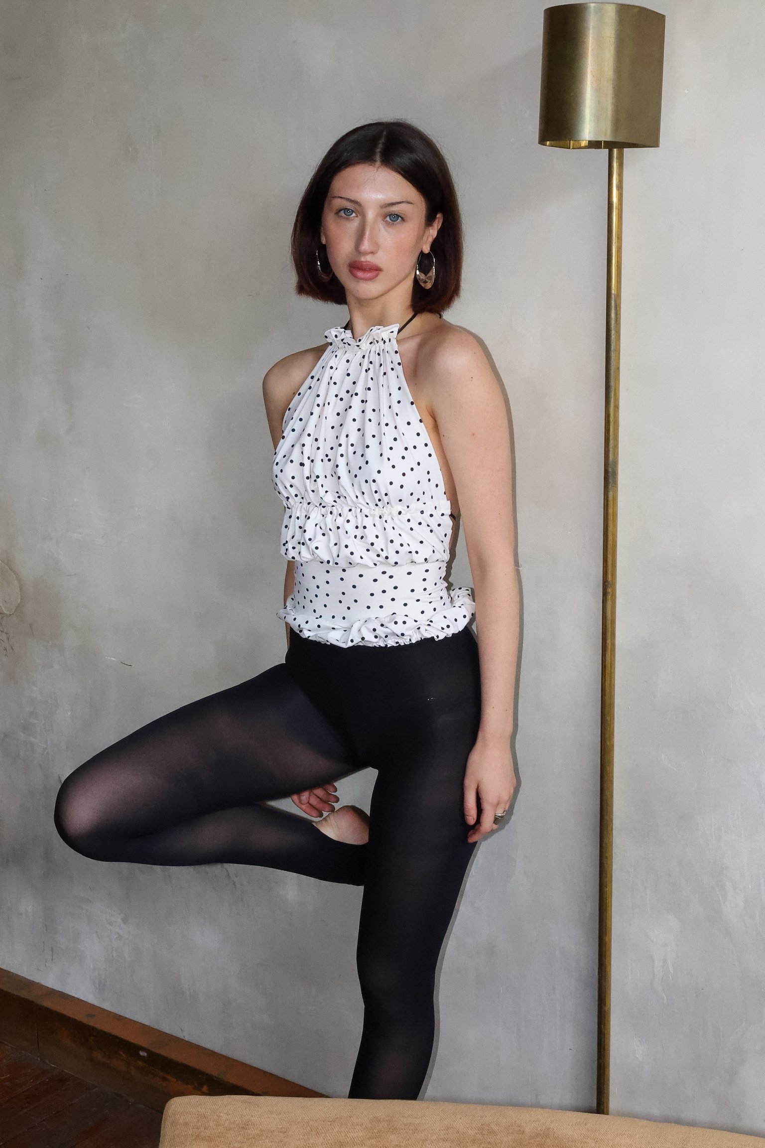 Quick View Pleated Stud Top $120.00 Quick View Pleated Stud Capri $129.00 Quick View Polka Ruffle Halter Top $100.00